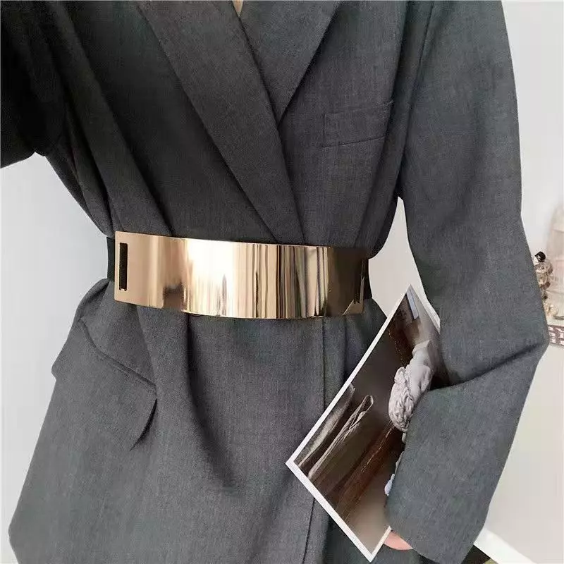 1. Material: Premium alloy metal + high-elastic stretch band, shiny polished finish, rust-resistant and wear-resistant 2. Design: Wide-width cut with elastic fit, waist-slimming effect, suitable for various waist sizes 3. Function: Decorative waist cincher, perfect for pairing with dresses, blazers, shirts, combines style and practicality 4. Craftsmanship: Precision-welded links, smooth burr-free edges, sturdy buckle that stays secure 5. Style: Minimalist/modern aesthetic, shiny metallic texture, ideal for casual, office, and party looks 6. Size: 4Cm,6Cm,8Cm 7. Color: Silver, Gold