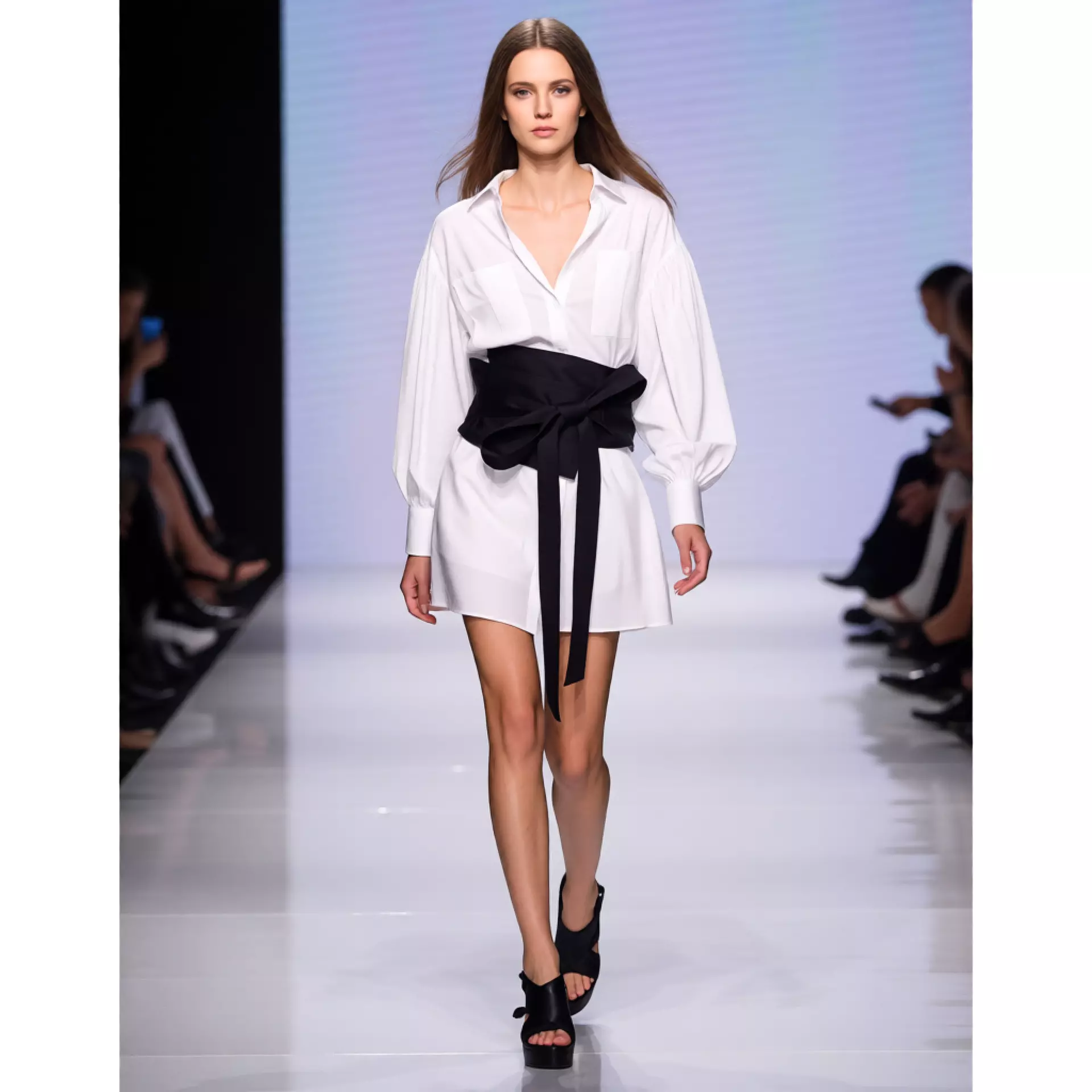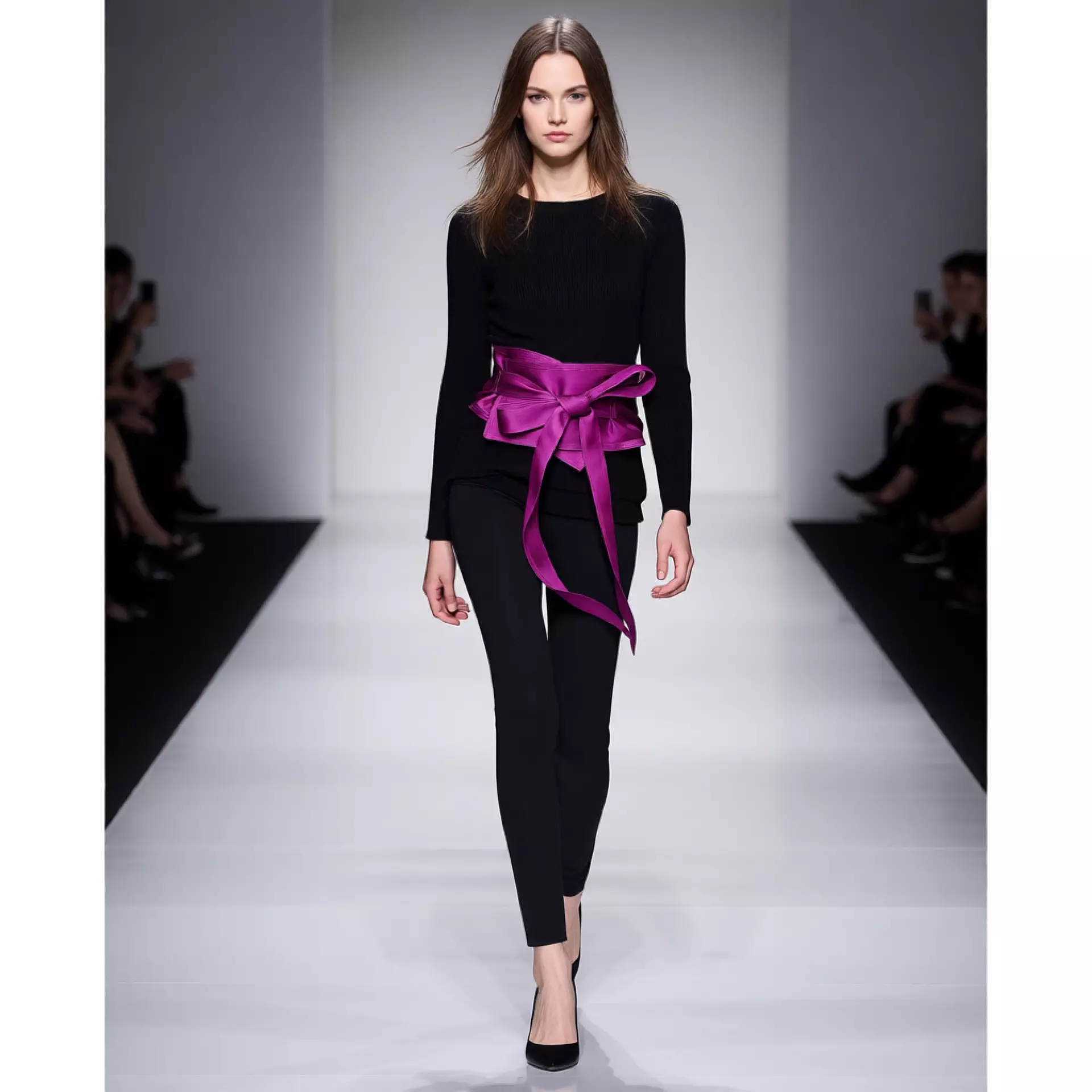 Wide waist belt with self-tie bow