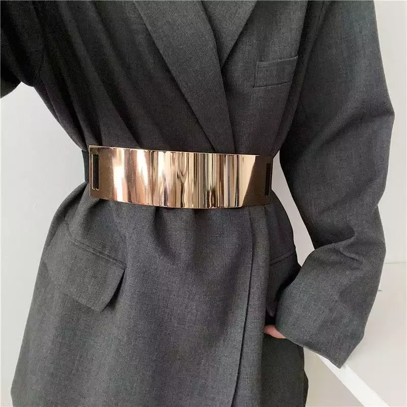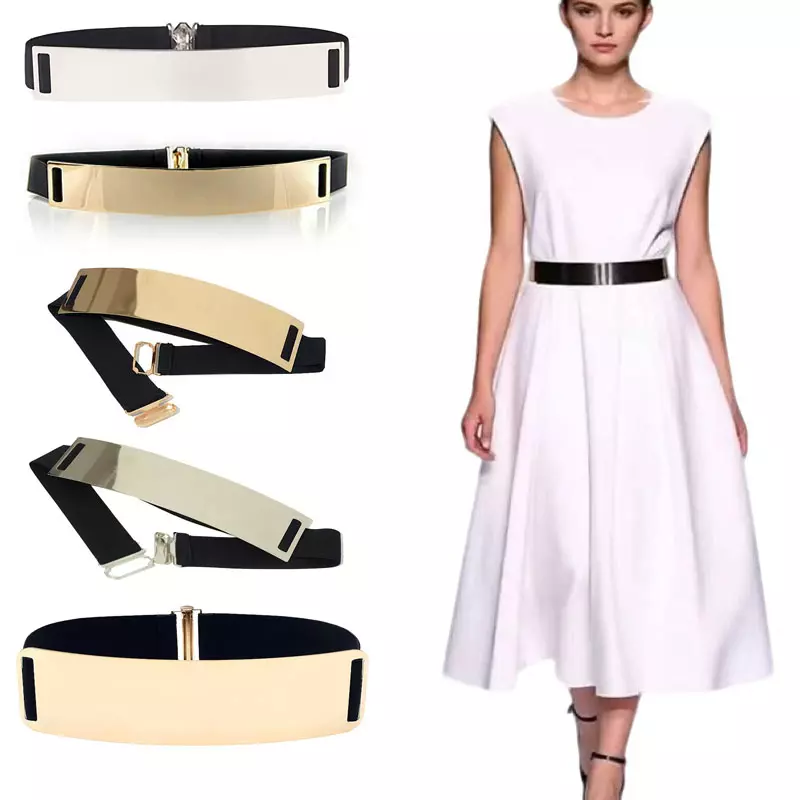 1. Material: Premium alloy metal + high-elastic stretch band, shiny polished finish, rust-resistant and wear-resistant 2. Design: Wide-width cut with elastic fit, waist-slimming effect, suitable for various waist sizes 3. Function: Decorative waist cincher, perfect for pairing with dresses, blazers, shirts, combines style and practicality 4. Craftsmanship: Precision-welded links, smooth burr-free edges, sturdy buckle that stays secure 5. Style: Minimalist/modern aesthetic, shiny metallic texture, ideal for casual, office, and party looks 6. Size: 4Cm,6Cm,8Cm 7. Color: Silver, Gold